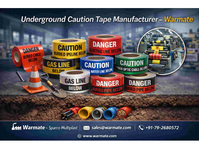 Warmate – Sparco Multiplast Pvt. Ltd. supplies high-quality Underground Caution Tape to New York City and across the USA. Manufactured in India, our caution tapes provide strong visual warnings for underground gas, electrical, water, and fiber optic ...