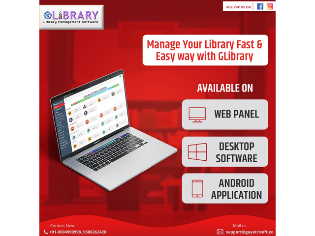 Manage your library with the simplest library management software. Glibrary is an advanced and elegant library management or resource center management system designed and supported by Gayatri software. Library management system software is ERP-based...