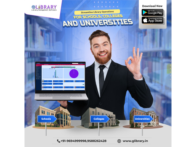 Glibrary - Library Management Software is a complete library management system for schools, colleges, and universities that includes Circulation, Cataloging, OPAC, Reporting, barcoding, Fine Amount Records, etc. It does provide a solution that helps the organization to manage books and administration with barcode facility, multi-users login, and member login. The best way to maintains, organizes, & handles countless books digitally to implement library management software suitable for public, private colleges, universities and school libraries. Library management system is advanced and elegant ERP based software that designed and developed to manage all the functions of a library & handle countless books systematically.