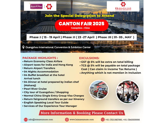 The 137th China Import and Export Fair - Canton Fair 2025 is going to be held on 14 - 19 April 2025 at International Convention & Exhibition Center, Guangzhou. Get Now Best Canton Fair China 2025 Packages
