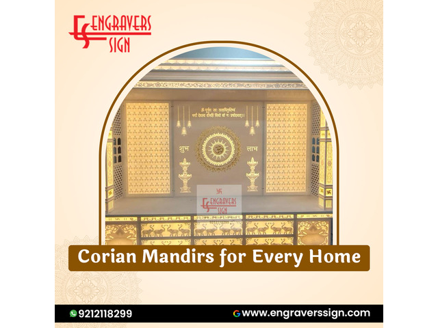 Engravers Sign presents the best Corian Mandir in Paschim Vihar, combining elegance, durability, and spiritual charm. Crafted from premium Corian material, our mandirs feature flawless finishes and intricate designs that enhance any home décor. With ...